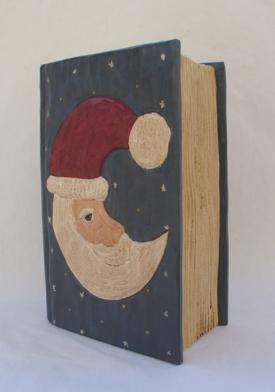 Green Crescent Moon Santa (flat carved) - 13 inches tall - $45.00